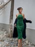 Emerald Crocodile Pattern Velvet Evening Dress - Chic and Timeless Design