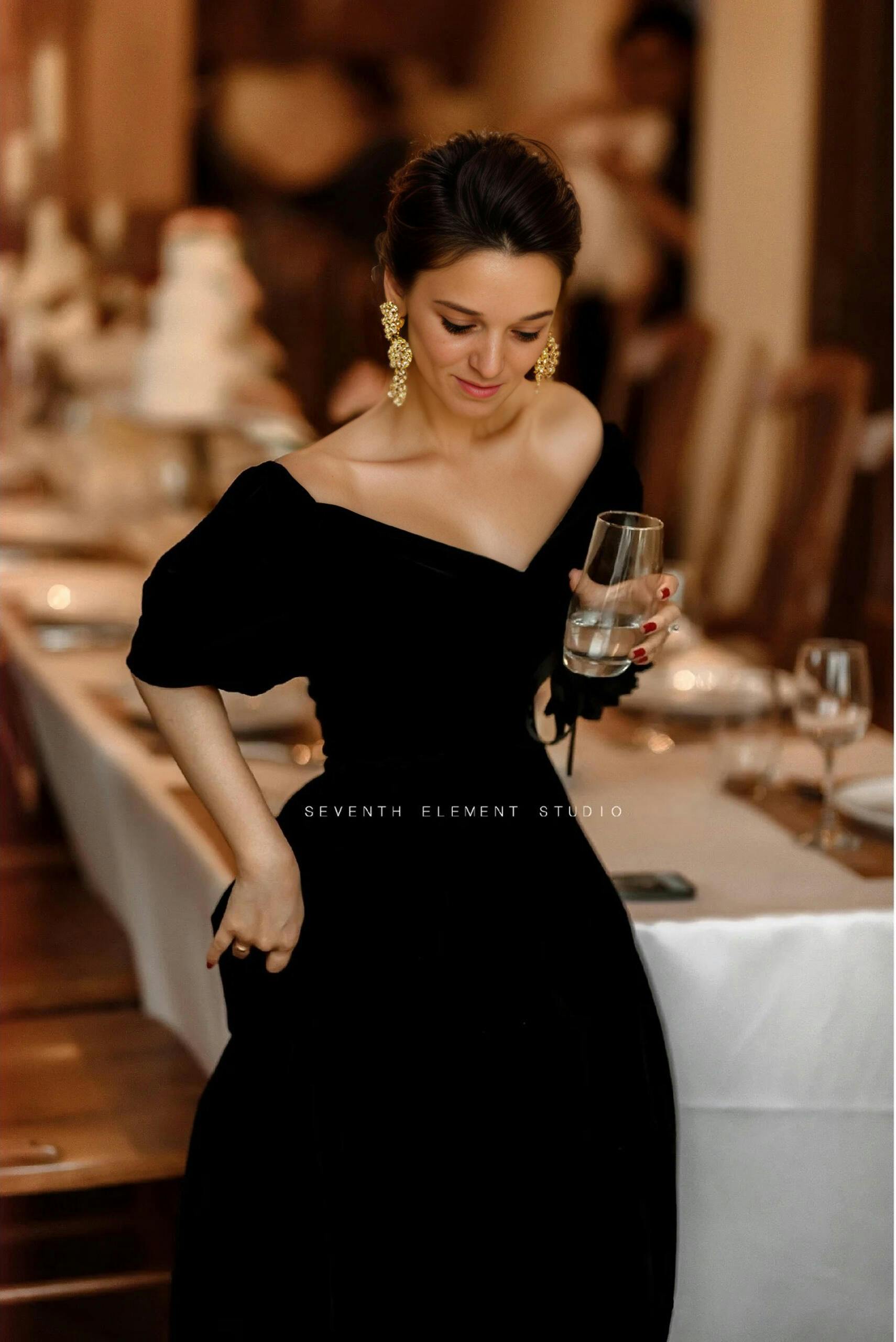 - Vintage designed short sleeves velvet prom dress for mini wedding, wedding guest, reception and other formal events.