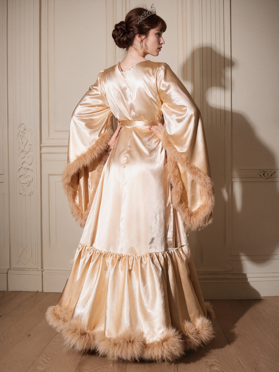Silky Satin Feather Fringe Hem Long Robe (Victorian Style / Christmas Gift)