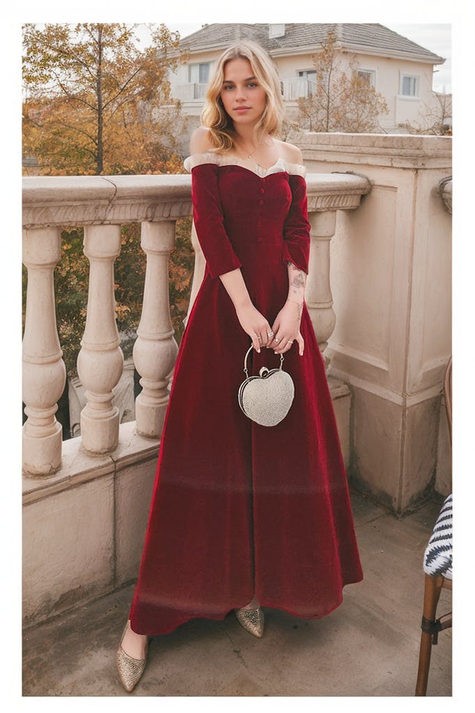Embrace timeless elegance with our Vintage Off-the-Shoulder Velvet Dress featuring gorgeous ruffled tulle and stylish 3/4 sleeves. This exquisite gown offers a flattering off-the-shoulder neckline that highlights your collarbone and adds a romantic touch. Crafted from high-quality velvet, the dress provides a luxurious feel while the soft tulle ruffles add an enchanting dimension that moves beautifully with you. Perfect for formal occasions, vintage-themed events, or evening outings, this dress is available in various colors to suit your personal style and make a lasting impression.